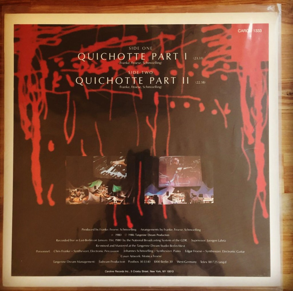 This is Live performance by Tangerine Dream, one of our favorite instrumental synth space favorites, i actually enjoy this type quite a lot, and envision the time when I will have the patience to sit and try my best and the worst example of this. but in the meanwhile, I play Tangerine Dream or Zombi, or Goblin, Or maserati or… whoever, point is this release, right here, has a really good pair of compositions that are really interesting, except the very first of the first half, which i believe it’s intended to be a little more joyful of sorts but comes put very, sitcom intro, too, sweet.