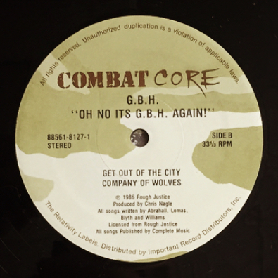 G.B.H. – Oh No It’s G.B.H Again! 12” EP, Combat Core Records 8856181271, 1986, US.
